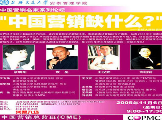 中國(guó)營(yíng)銷(xiāo)名家系列論壇于05年11月6在上海舉行,南方略劉祖軻教授擔(dān)任特邀嘉賓,并作精彩演講!